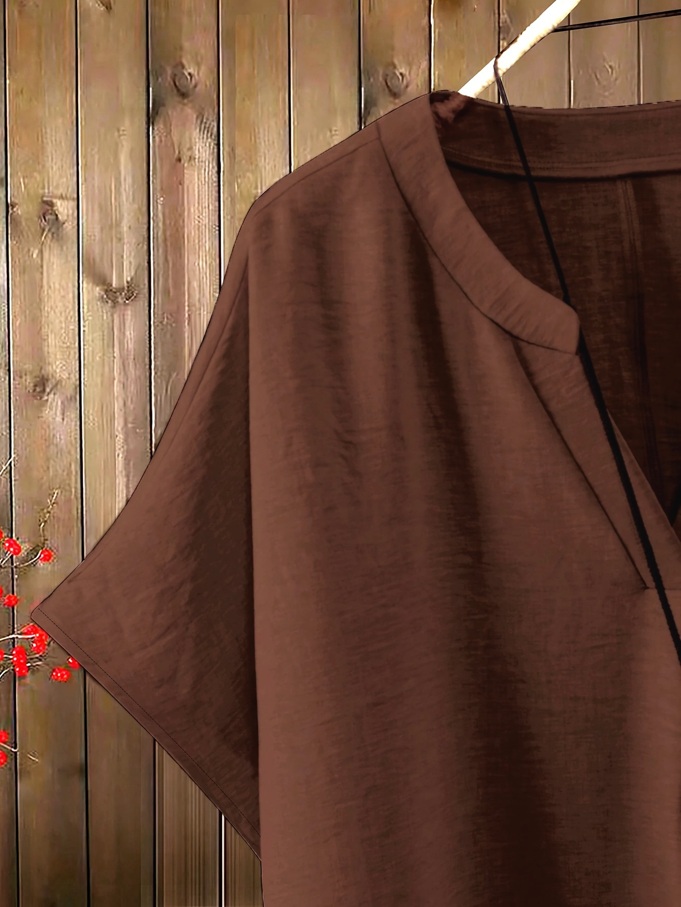 Effortless Elegance - Stay effortlessly stylish and comfortable with our Two-Piece Set. This elegant ensemble features a classic V-neck top and matching bottoms, crafted from a non-stretch woven fabric for a polished look. Perfect for casual brunches or semi-formal outings, its minimalist charm shines through without any distracting patterns.