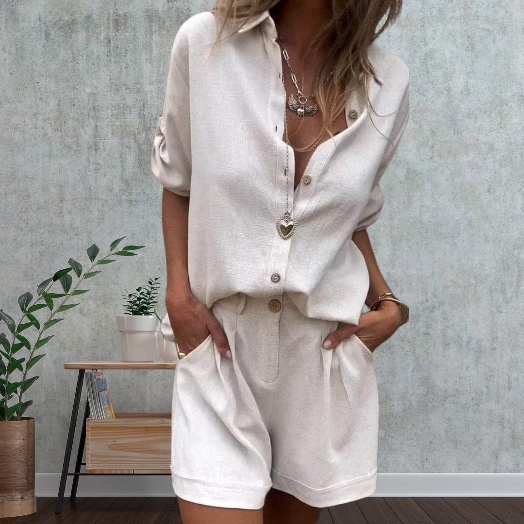 Experience Summer Comfort with Mia™ - Lightweight Linen Set - Say goodbye to discomfort and hello to style! This lightweight linen set is designed to keep you cool and comfortable, perfect for those warm summer days. Its chic design effortlessly transitions from day to night, ensuring you look fantastic without sacrificing comfort.