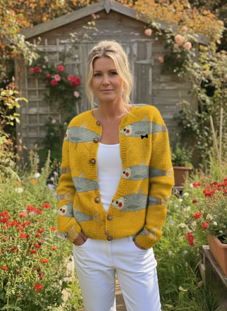 Vintage Fish Sardines Art Print Buttoned Cardigan Sweater